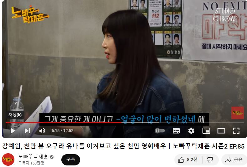 프리지아와 각종 예능에 출연했다 프리지어의 "짝퉁논란"에 불똥까지 제대로 맞으며 한동안 두문분출했던 강예원 씨가 오랜만에 탁재훈 씨가 운영하는 유튜브채널 노빠꾸에 출연해서 시원시원한 입담을 늘여 놓으며 화제가 되고 있습니다