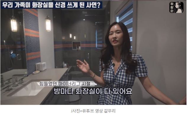 화장실이 무려 14개가 디자인이 모두 다르다고 하네요 옛날 추신수 씨가 마이너리그에 있을 때 선수들과 아파트를 같이 썼었는데 그때 한 화장실에 선수 4명이 써야 하는 상황이라 너무 불편했었다고 합니다 그래서 이 집만큼은 화장실이 무려 14개 어마어마하네요 ~