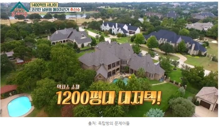 추신수 씨 미국 텍사스에 위치한 이 대저택은 무려 5500평에 해당되는 부지를 자랑하고요 화장실만 해도 무려 14개가 있다고 합니다.