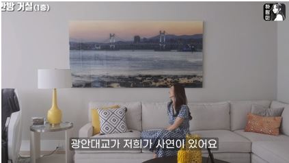 안방에는 광안대교 사진이 뒷벽에 걸려 있는데 여기서부터 두 사람이 처음 만나서 데이트를 하게 된 곳이라 깊은 의미가 있다고 하네요 이 광안대교는 다른 말로 다이아몬드 브리지라고도 하는데요 역시나 돈 많은 사람들의 첫 데이트 코스로 멋졌네요 ^^ 추신수 미국집에는 안방에도 이렇게 거실이 있습니다 멋지다 ~