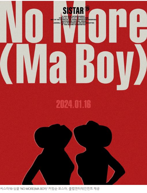 씨스타 19의 컴백일은 2024년 1월 16일 화요일입니다.커밍순포스터는 정열적인 붉은색 배경에 실루엣두사람만 카우보이 모자를 쓰고 그려져 있습니다.씨스타 19는 읽을때 씨스타 십구로 읽으시면 안되세요 씨스타 나이틴으로 읽어야 합니다 여기서 19라는 뜻은 성인버전이라는 뜻보다는 19살 이라는 성인과 사춘기의 중간정도의 순수함이나 불안등을 표현하기 위해 붙여진 유닛명입니다 . 춤도 다소 야하다보니 많은 분들이 오해하시는 부분들이 있어서 한번 체크해 봐드립니다 ^^